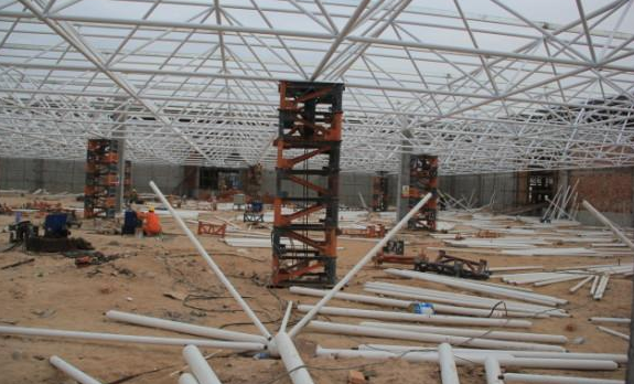 5)总体晋职法:此步履多使用在周边支护以及有多点支护的网架结构,可采取平板升降机、液压千斤顶等小型机具作业津南施工;
